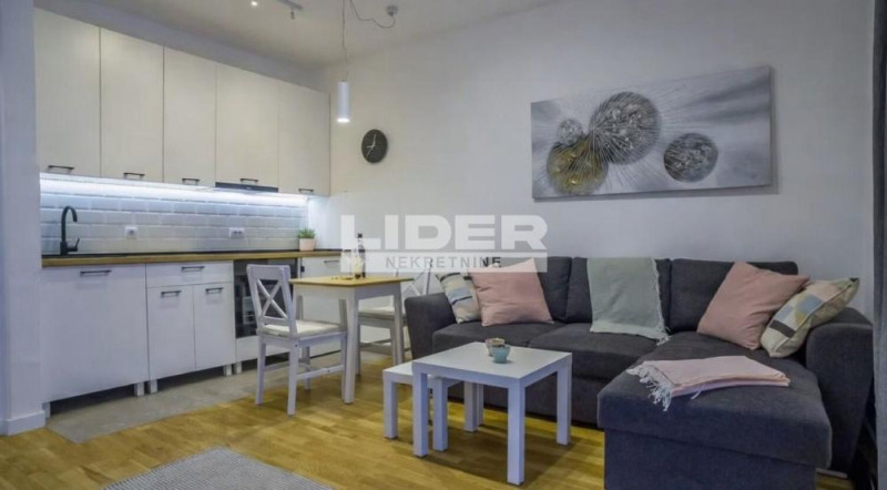 Kompletno opremljen stan u novogradnji. Prostorije: kuhinjsko-trpezarijski-dnevni boravak, spavaća soba, kupatilo, terasa. agencijska provizija 50%