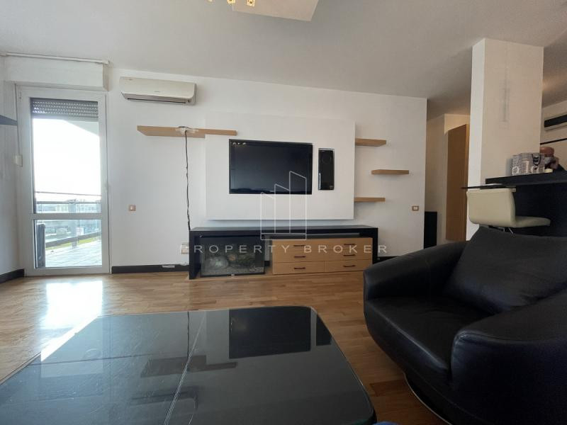 Obezbeđenje, recepcija 24/7. Sastoji se od predsoblja, dnevnog boravka sa kuhinjom i trpezarijom, dva kupatila, jedne veće i jedne male spavaće sobe i prostrane lodje. Moguće ga je zakupiti sa jednim ili sa dva garažna mesta koja se doplaćuju po 100EUR. I druga soba je opremljena.