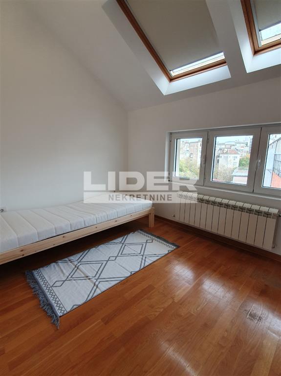 Opremanje enterijera stana: hrastov parket, španska granitna keramika, aluminijumska stolarija i Velux krovni prozori u spavaćim sobama. Grejanje je etažno sa Vaillant pumpom, razvedeno kroz podno grejanje i radijatore, dok su u svim prostorijama postavljene inverter klime takođe sigurnosna vrata i video interfon.