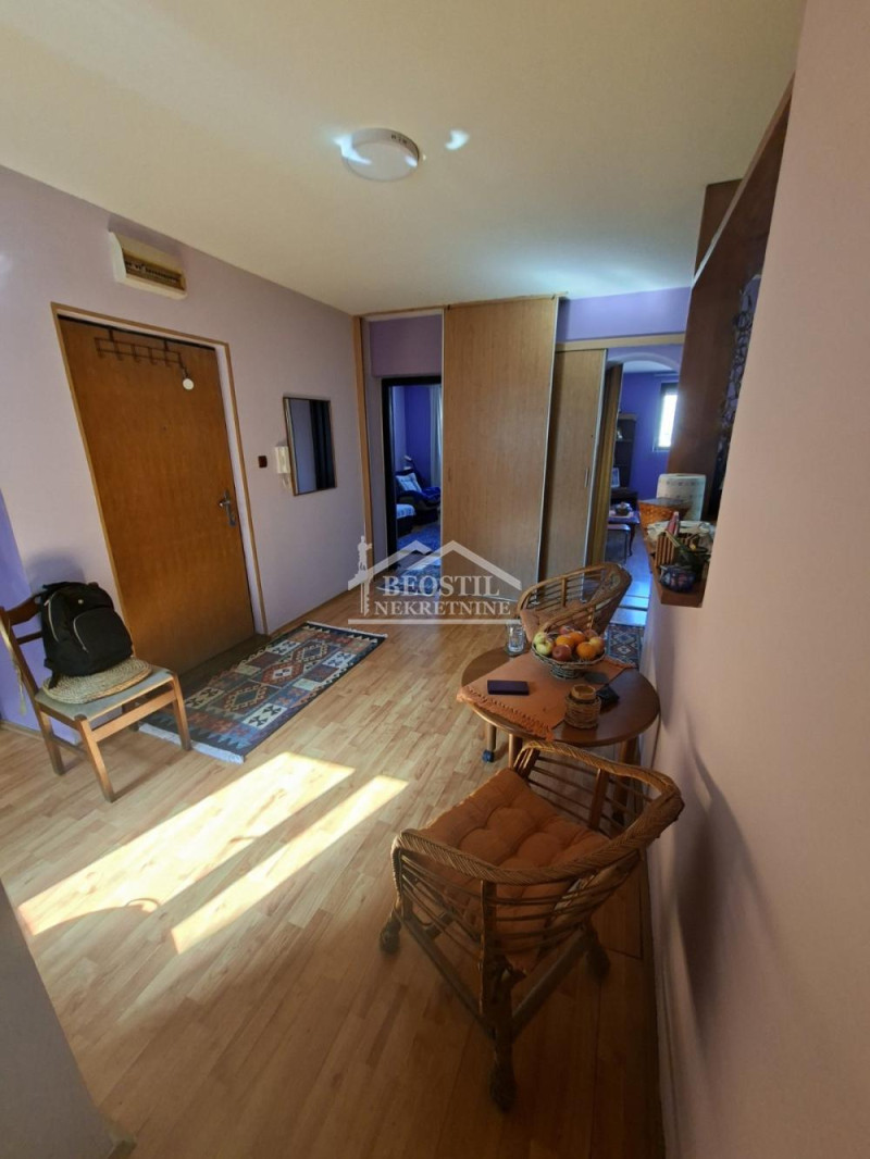 Prodaje se trosoban komforan stan na odličnoj lokaciji kod Zelenog venca. Stan se nalazi na 6. spratu u nadogradnji u 5-spratnoj zgradi sa liftom. Do stana se dolazi dogradnim stepenicama. Iznad stana se nalazi tavan čija je adaptacija u stambeni prostor tek započeta i nezavršena. Tavan je iste površine kao i stan (74m2) od čega je 40m2 bez kosina, a ostatak sa visokim kosinama, tako da je moguće adaptirati u stan.