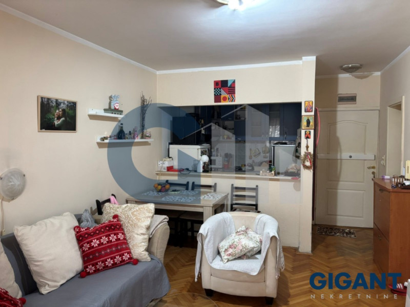 Prodaje se svetao i funkcionalan 1.5 stan površine 39m2 u blizini OFK stadiona. Stan se nalazi na prvom spratu uredne stambene zgrade. Strukturu stana čine dnevni boravak sa kuhinjom i trpezarijom, spavaća soba, kupatilo i terasa. Stan se prodaje sa nameštajem.