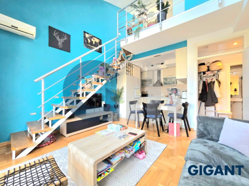 Stan se sastoji od dva nivoa-na prvom se nalaze hodnik, kupatilo, spavaća soba, kuhinja sa trpezarijskim delom i dnevna soba iz koje se izlazi na prostranu, modernu terasu. Drugi nivo stana sastoji se od galerije, kupatila, spavaće sobe i prostorije sa walk in garderoberom.