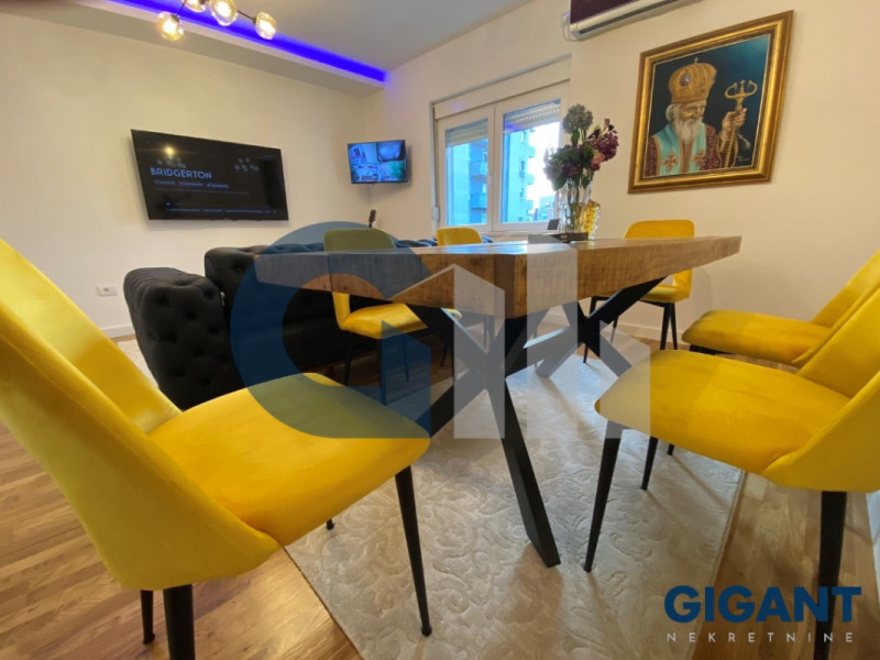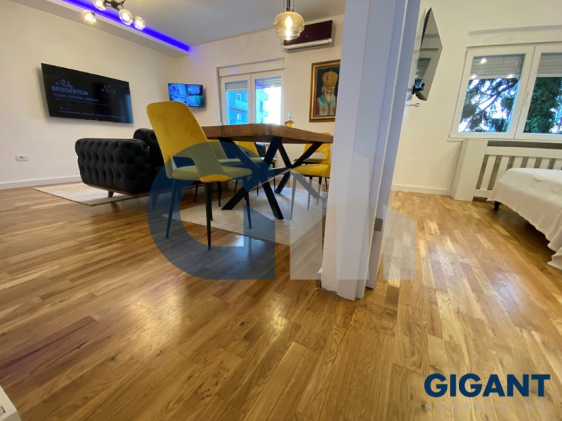 U postupku renoviranja ugrađeni su najkvalitetniji materijali, opremljen je kvalitetnim nameštajem, tehnika je nova-nekorišćena u garantnom roku (mašina za pranje veša, mašina za sušenje veša, sudo mašina, ugradna rerna, ugradna ploča, frižider, pet televizora, robot usisivač)