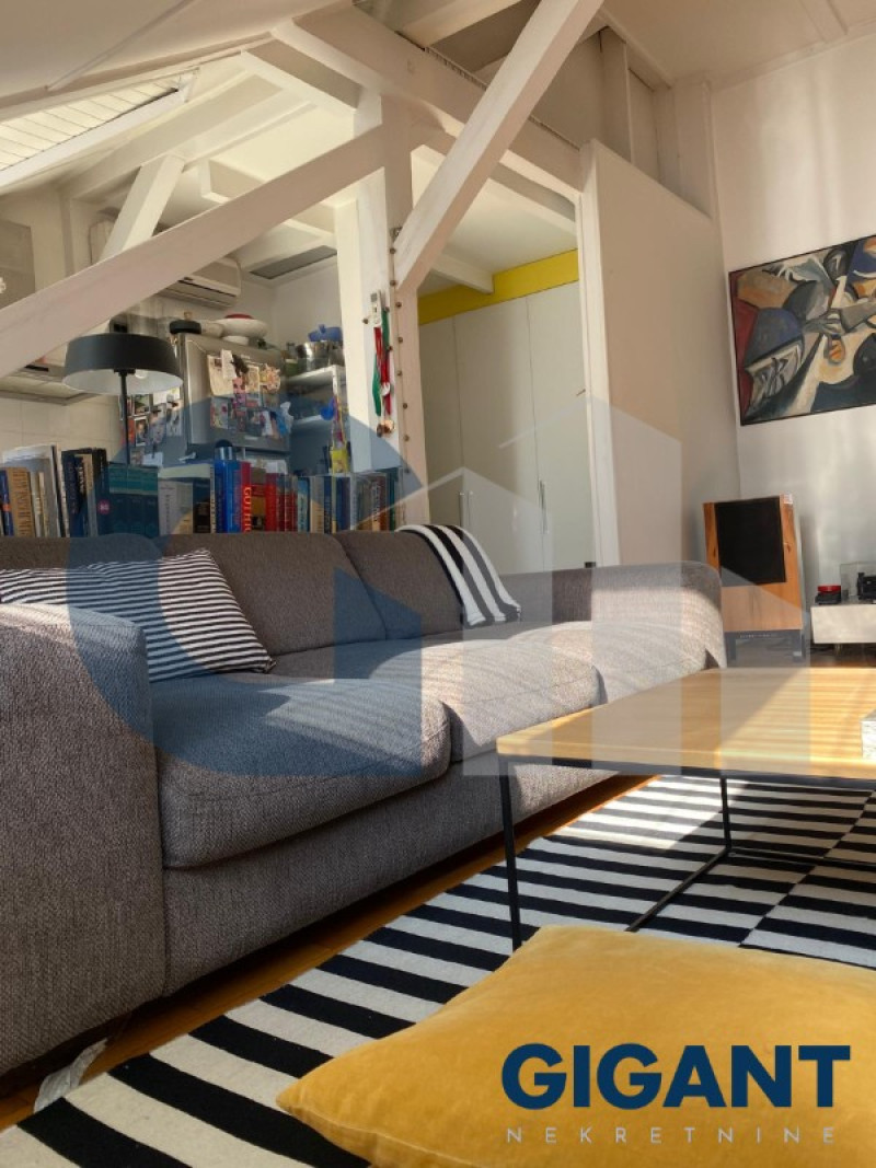 Stan je svetao, miran - orijentisan ka dvorištu, sastoji se od predsoblja, prostranog dnevnog boravka, dve spavaće sobe, galerija koja može biti u funkciji radne ili još jedne spavaće sobe, kuhinje, kupatila i prelepe terase površine 20m2.
