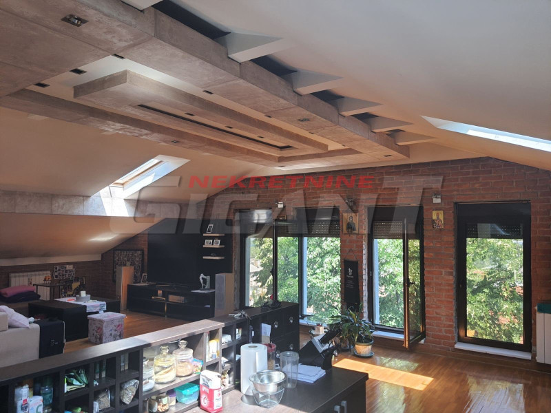 Ugovorna površina 175m2. Karaburma, prodaje se prelep petosoban stan na potkrovlju, nadograđen, uknjižen, renoviran i luksuzno namešten. Prostrana dnevna soba koja je povezana sa kuhinjom i trpezarijom sa puno svetlosti i opustajuće uklopljenim nameštajem i bojama. Nalazi se u zgradi koja je okružena zelenilom blizu škole, vrtića, trgovina, autobuskog stajališta sa direktnom vezom do centra grada. Postoji mogućnost ugradnje lifta. Agencijska provizija 2% 4/4 Patrisa Lumumbe -imamo slicne NEKRETNINE BEOGRAD
