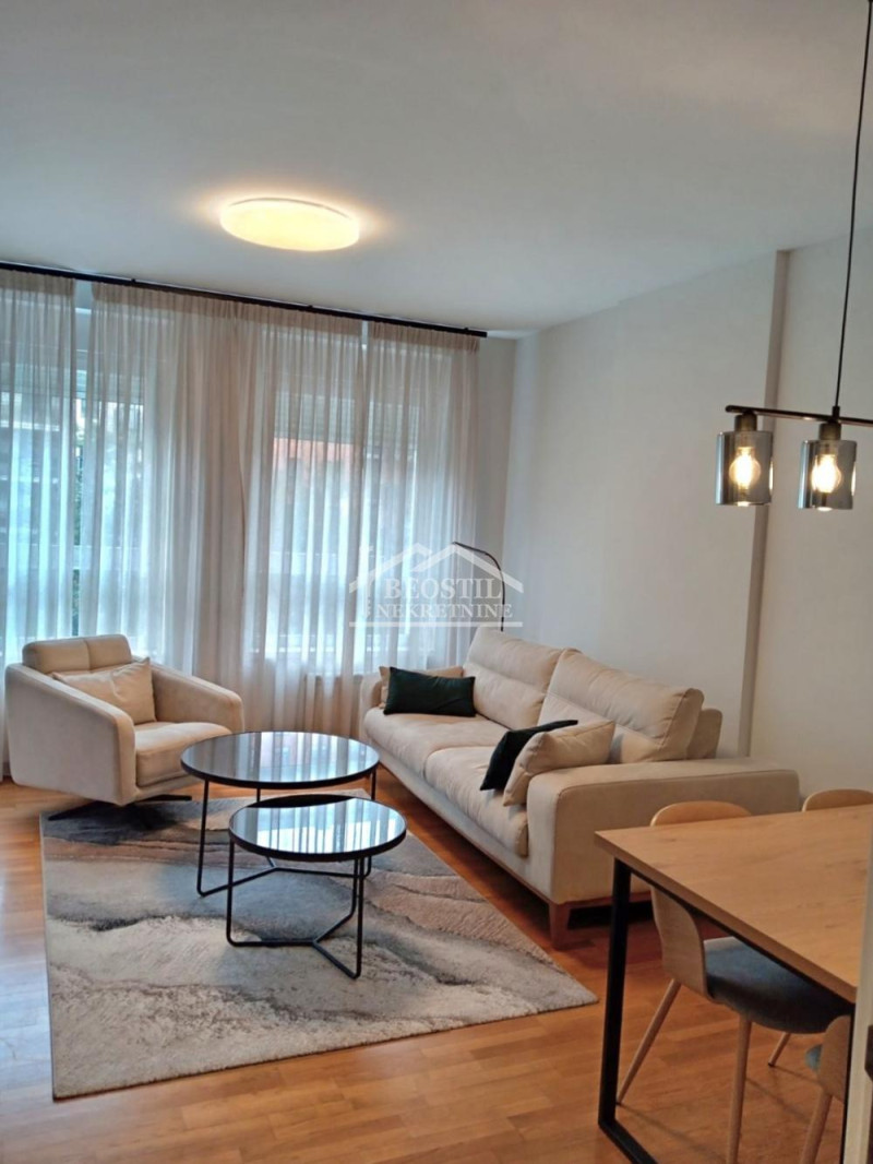 Stan se nalazi na jednoj od prestižnih lokacija Novog Beograda u Savadi, povučen od ulice, ušuškan u parkovskom okruženju, u zgradi koja je uredna, besprekorno čista.