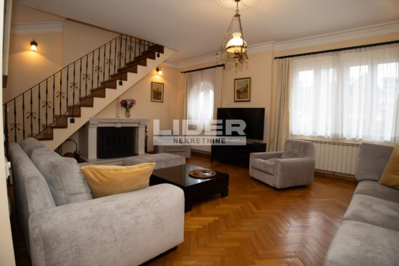 Donji nivo: dnevna soba, kuhinja, toalet.