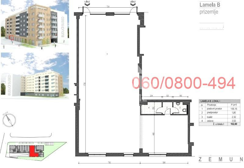 Višenamenski lokal od 162.80m2 u prizemlju u završenoj novogradnji. . Građevinska dozvola.