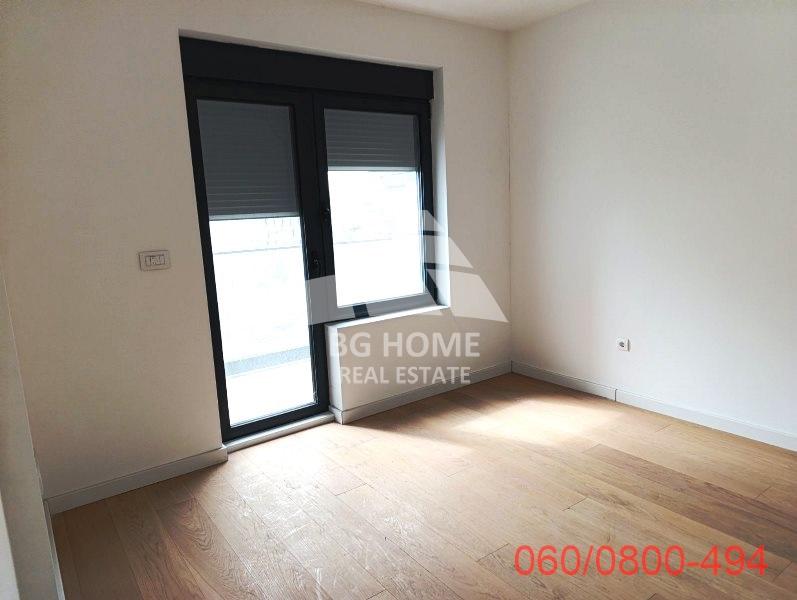 Funkcionalan stan sa dve spavaće sobe, prostranom dnevnom sobom sa kuhinjom, kupatilo i toalet i terasom sa pogledom na Hram Svetog save, jugozapadno orijentisan.