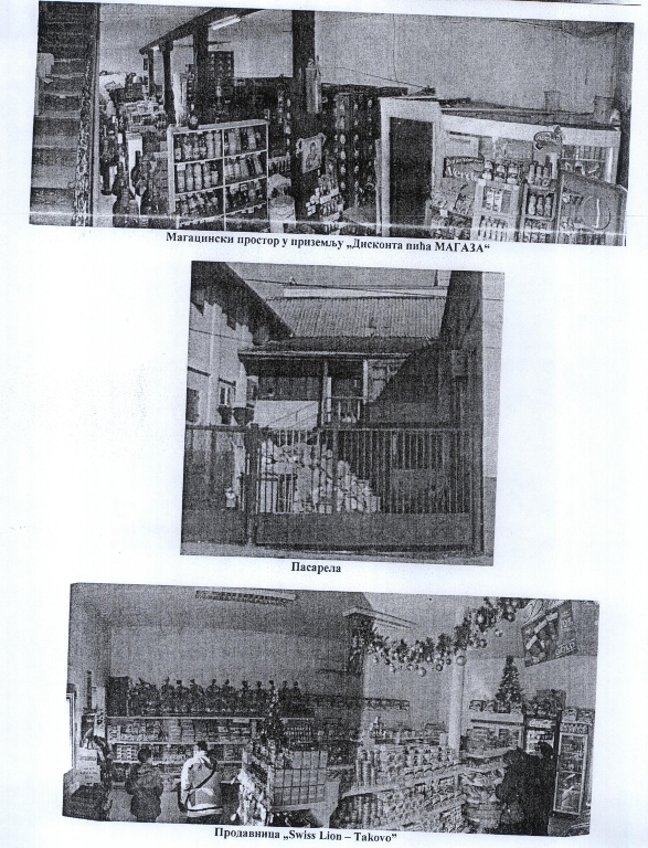 Ovaj prostor koji se sada koristi kao prodajni prostor "Slatka kuca - Swiss LION - Takovo", je izmerene povrsine 187,26m2.