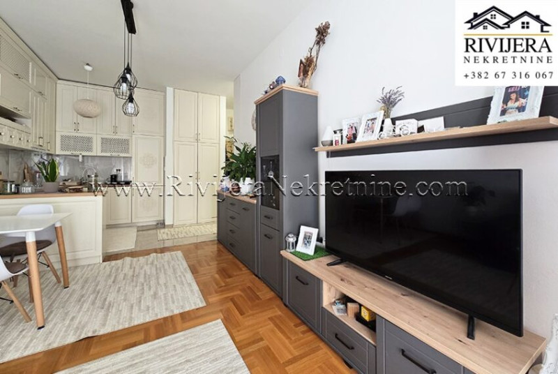 Na prodaju dvosoban stan površine 62 m² u prizemlju nove zgrade, uz novi bulevar Tivat–Budva.