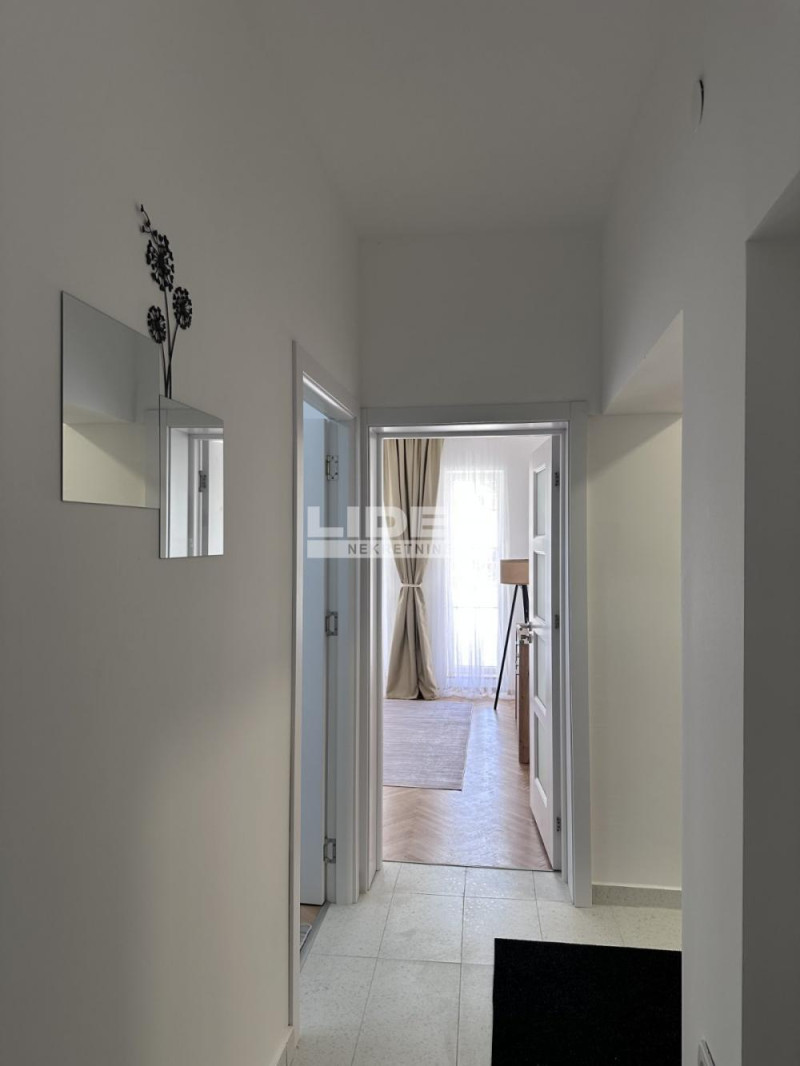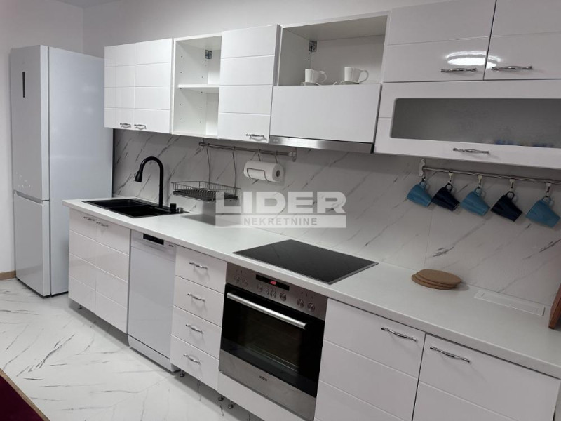 Raspored prostorija je izuzetno funkcionalan: prostran dnevni boravak, dve komforne spavaće sobe, moderno opremljeno kupatilo i terasa koja pruža dodatni komfor i uživanje. Stan je luksuzno uređen i potpuno opremljen kvalitetnim nameštajem i tehnikom. Grejanje je putem inverter klima uređaja, što omogućava efikasnu i ekonomičnu kontrolu temperature tokom cele godine.