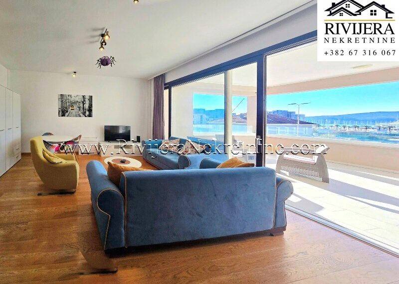 Prodaje se prostran, moderno uređen jednosoban stan površine 76 m² sa garazom, smješten na drugom spratu kvalitetne zgrade, u neposrednoj blizini Porto Montenegra.