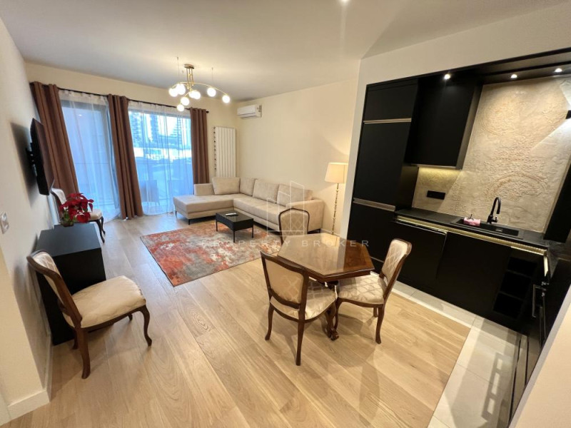Potpuno nov, neuseljavan. Stan je opremljen elegantnom kuhinjom urađenoj po meri i kompletnom belom tehnikom, kao i kompletnim nameštajem.