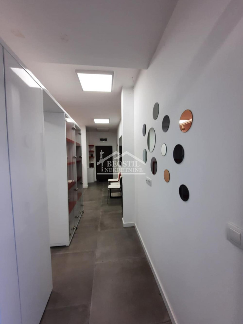 Poseduje dve ordinacije, info pult sa čekaonicom, mini kuhinju, kupatilo, toalet, terasu, a moguće je zakupiti i garažno mesto u zgradi koje se dodatno plaća 100€.