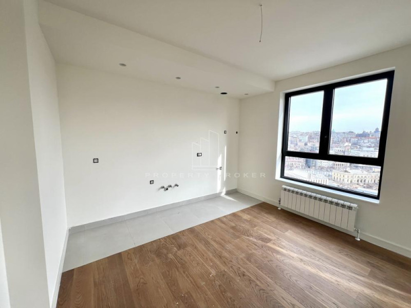 Izdaje se potpuno nov stan u modernoj zgradi BW Iris. Nalazi se na 13.spratu i sastoji od: ulaznog hodnika, prostranog dnevno-trpezarijskog dela sa kuhinjom i izlaskom na terasu, master spavaće sobe sa sopstvenim kupatilom, spavaće sobe, vešernice i kupatila.