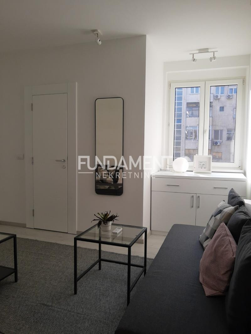 U prilici smo da Vam ponudimo stan, kompletno namešten u zgradi odličnog kvaliteta i bogatom istorijom, na trećem spratu bez lifta sa video nadzorom, interfonom, od 27 m2, useljiv odmah. Račini mali i veoma povoljni.