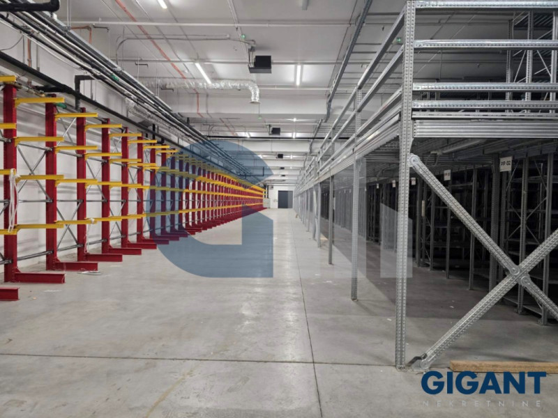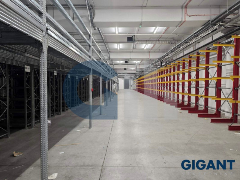 Visina i podovi: Visoki plafoni od 5 metara, pogodni za regalno skladištenje i industrijski pod velike nosivosti. Izdaje se sa ili bez postojećih stalaža.