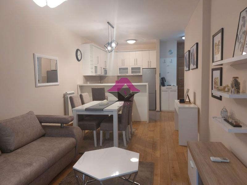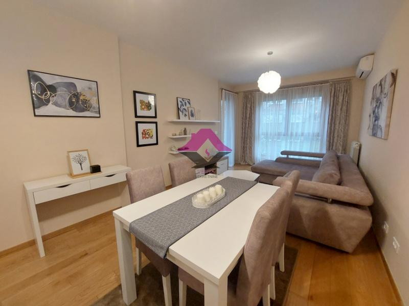 Dvosoban komforan lux opremljen stan u Central Gardenu-prestižnom objektu zatvorenog tipa sa svojim obezbeđenjem, uređenim parkovskim površinama u unutrašnjem delu objekta i svojim parking mestom u garaži na -2 nivou.