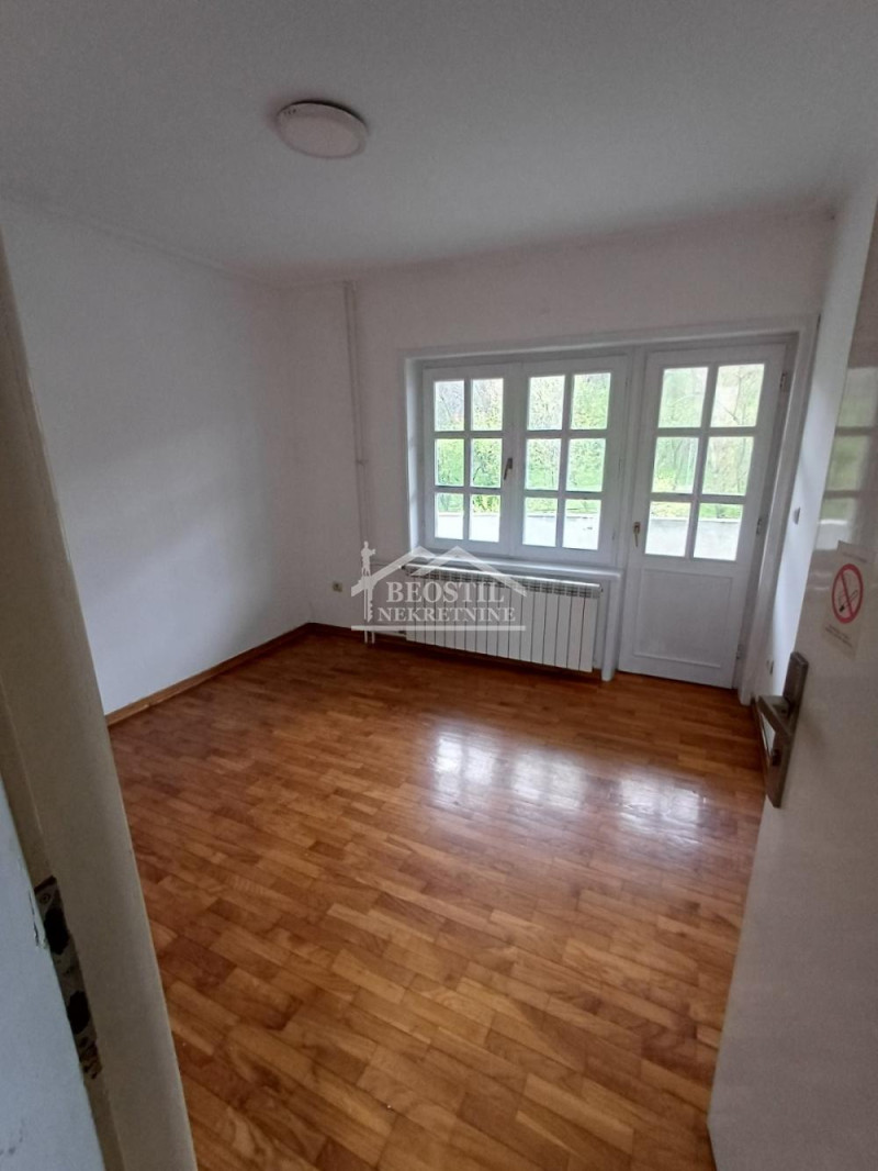 Poslovni prostor smešten na prvom spratu, hodnikom spojene dve velike kancelarije sa izlaskom na veliku terasu okrenutu ka parku, velika kuhinja, toalet- kupatilo.