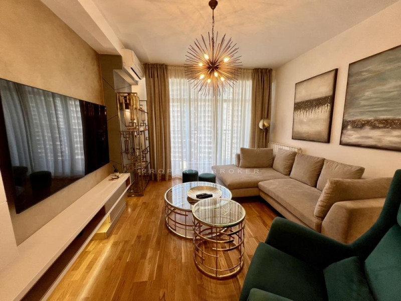Izdajemo lux, kompletno namešten, svetao i prostran stan na 13. spratu zgrade Parkview. Stan je opremljen kvalitetnim, modernim nameštajem i kompletnom belom tehnikom, sa prelepim pogledom na reku, Kulu i Savski park.