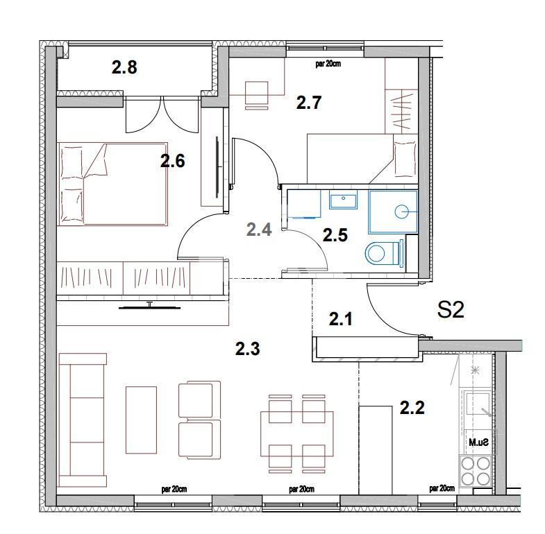 U ponudi moderan dvosoban stan od 51,16m² u kvalitetnoj novogradnji, smešten u mirnom i planski uređenom kompleksu zatvorenog tipa.