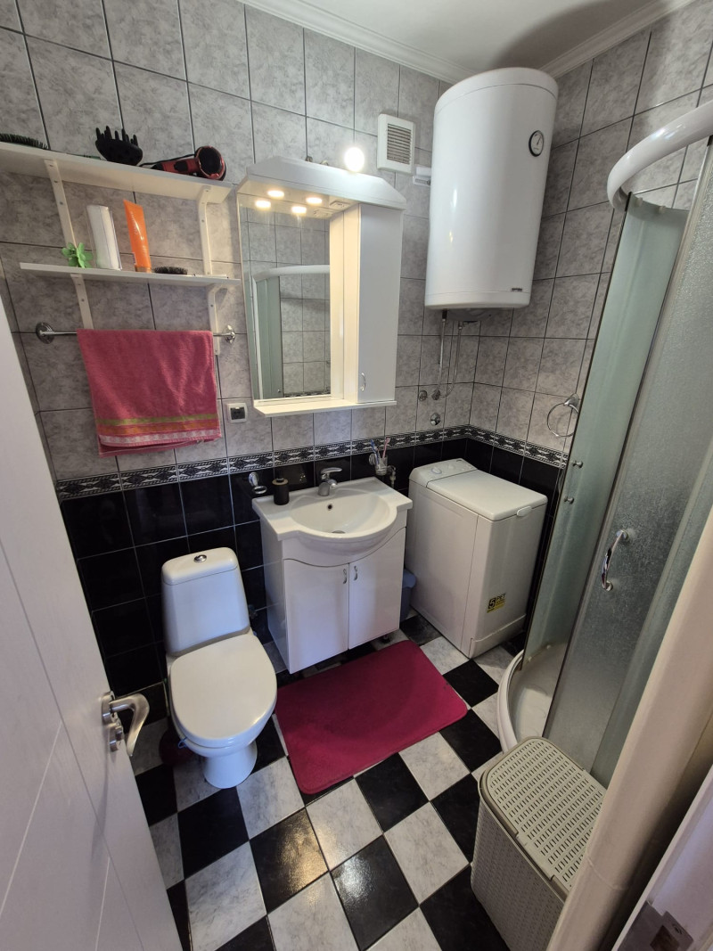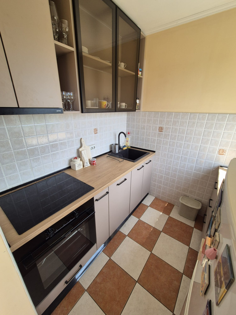 Kuhinja je kompletno opremljena i sadrži mašinu za sudove, ugradni šporet, mikrotalasnu, frižider.