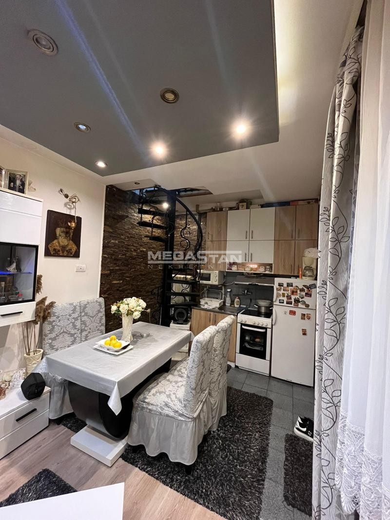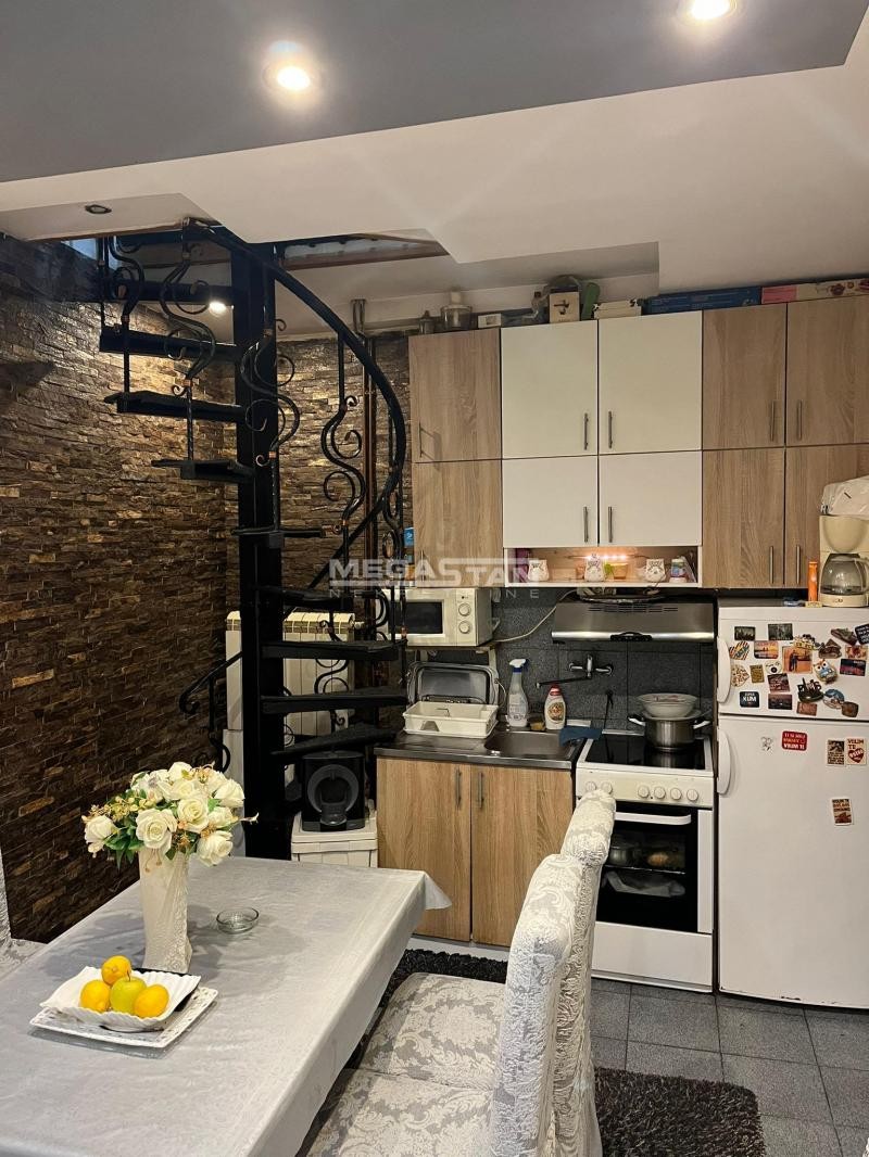 Na prizemlju kuće je ulaz u trpezarijski deo sa kuhinjom koja je rađena po meri, predivan dnevni boravak i malo kupatilo.