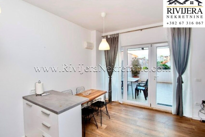 Na atraktivnoj lokaciji u Tivtu, u naselju Kalimanj, prodaje se kompletno opremljen stan površine 29 m² sa prostranom terasom od 33 m² na koristenje. Stan se nalazi na prvom spratu novije zgrade (2022. godište), južno orijentisan, sa dosta svjetlosti tokom dana.