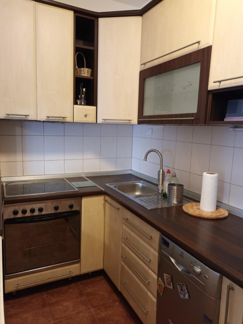 Stan je potpuno opremljen i moderno uređen, sa svim neophodnim uređajima i nameštajem.Dnevna soba je velika i prostrana, a u spavaćoj sobi je ugradni plakar, kao i u hodniku . Kuhinja je nova i moderna , sa mašinom za sudove, šporetom i frižiderom.
