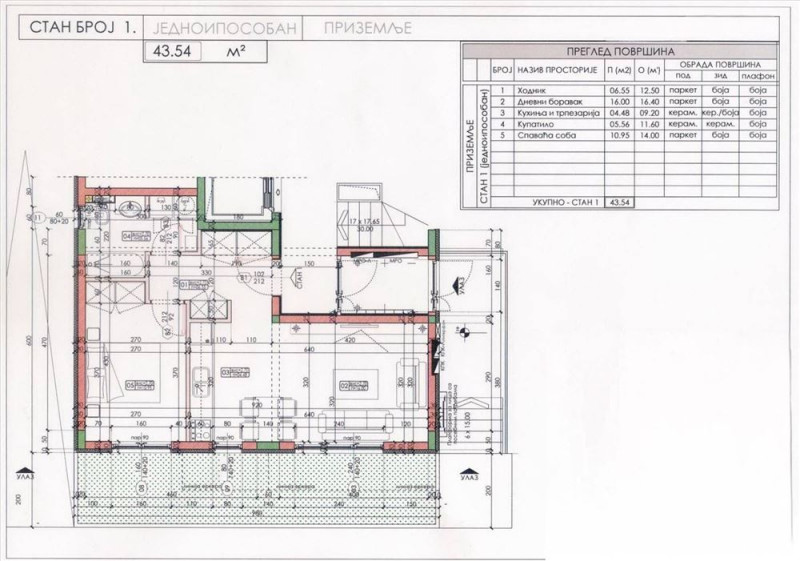 Prostorije: predsoblje, dnevni boravak sa kuhinjom, spavaca soba, kupatilo.
