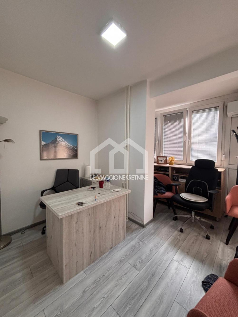 U prethodnom periodu korišćen je kao kancelarijski prostor i adaptiran u skladu sa tom namenom, tako da trenutno ima predsoblje, 4 kancelarije, kuhinju, kupatilo, toalet i dve lođe. Uz male adaptacije lako se može vratiti u pređašnje stanje (izvorno stan ima predsoblje, dnevnu sobu, kuhinju, trpezariju, spavaću sobu, manju sobu, kupatilo, toalet i dve lođe).