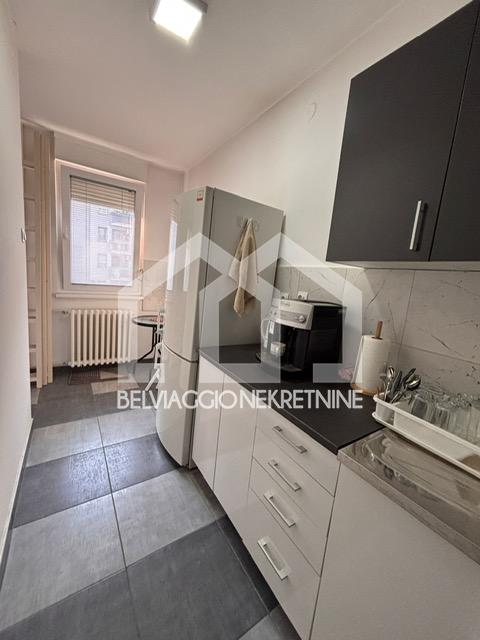 Delimično je renoviran (PVC stolarija, sigurnosna vrata, nov laminat), dok su kupatilo i toalet u izvornom, ali odličnom stanju.
