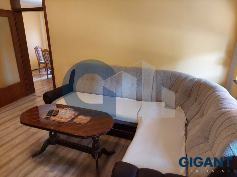 Prostorije:ulazni hodnik, kuhinja sa trpezarijom, dve spavaće sobe, dnevna soba, kupatilo, vešarnica, zastaklena velika lodja. Parking je slobodan .