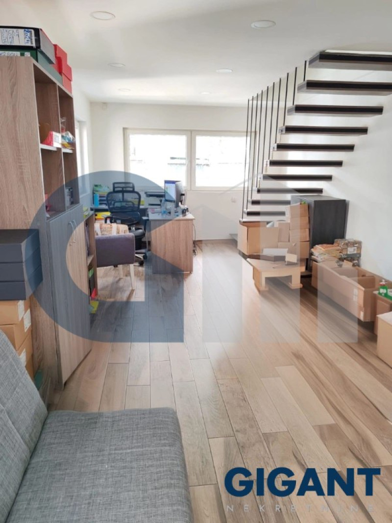 Prodaje se troetažni stan, koji je u iznajmljivanju kao poslovni prostor. U suterenu se nalazi hodnik sa kupatilom, na prvom spratu je velika prostorija (kancelarija) i mala kuhinja, a na drugom spratu se nalaze dve odvojene prostorije (kancelarije) i kupatilo.