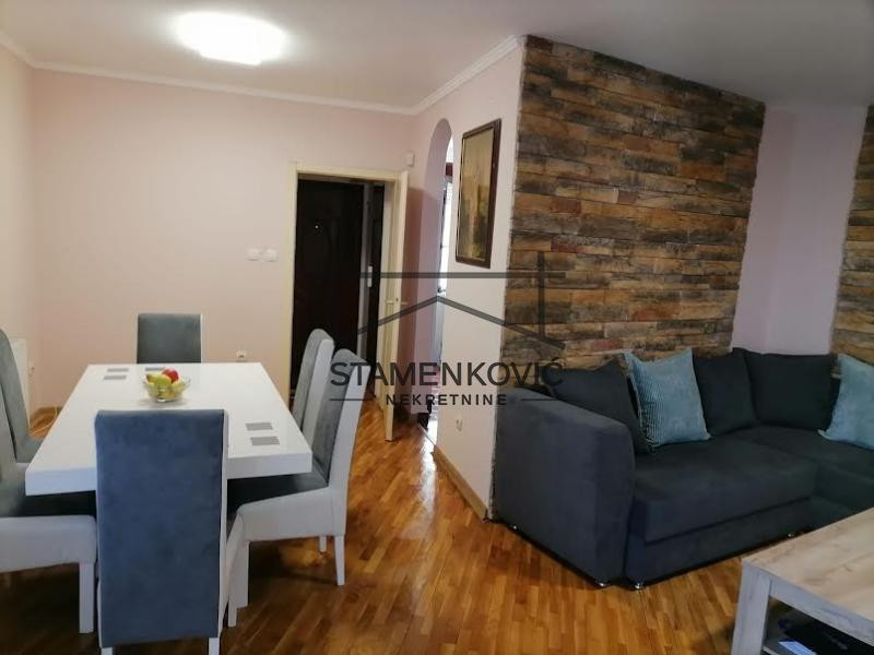 Fantastičan trosoban uknjižen stan 71m2,drugi sprat,dvostrano orjentisan,2 kupatila ( jedno sa ležećom kadom a drugo tuš kabina, oba imaju mesto za veš mašinu ),2 terase ( iz svih soba izlaz na terasu ),2 klime,alarm ,dnevni boravak i trpezarija OPEN SPACE oko 36m2 ,Veliko lepo dvorište sa parking mestima za stanare zgrade a drugi deo dvorišta uređena zelena površina - dvorište se zaključava.Miran kraj, u blizini 2 škole ,marketi,apoeke ,dom zdravlja.Po dogovoru može biti namešten.